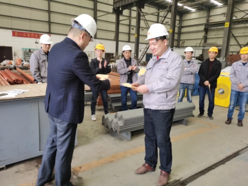 2021年4月2日中午12:15分,天奇藍天公司高管及先進(jìn)班組和節約獎獲得者近30人在三號廠(chǎng)房“橫梁班”現場(chǎng)召開(kāi)了一場(chǎng)別開(kāi)生面的表彰大會(huì )。 首先,由公司總經(jīng)理章愛(ài)前對三月份在“先進(jìn)班組”考核中優(yōu)勝的“許世艷班組”和“谷昆明班組”授予了先進(jìn)班組流動(dòng)紅旗和獎金,并對2020年受股份公司表彰的姚中華、翟宏維、滕軍波、李文四名標兵頒發(fā)榮譽(yù)證書(shū)和獎金。章總還對在三月份節約材料專(zhuān)項工作中表現突出的周勇、李磊等六名同志頒發(fā)獎金。 我公司在今年伊始,面對原輔材料漲價(jià)和用工緊張的雙重壓力,積極應對,著(zhù)實(shí)圍繞生產(chǎn)成本練習內功,號召廣大員工從節約“一度電”、“一滴水”、“一寸鐵”入手,自覺(jué)參與節約原材料活動(dòng),并及時(shí)做好該次活動(dòng)的組織和評選工作。 此次我公司將先進(jìn)表彰會(huì )的會(huì )場(chǎng)移到生產(chǎn)車(chē)間一線(xiàn),就是要號召更多的員工投入到生產(chǎn)勞動(dòng)競賽和節約原材料這兩項活動(dòng)當中去,積極弘揚主人翁精神和愛(ài)崗敬業(yè)的主旋律,為全面完成今年的生產(chǎn)經(jīng)營(yíng)指標而努力工作。 |